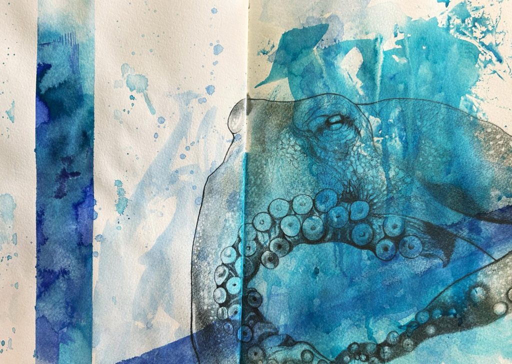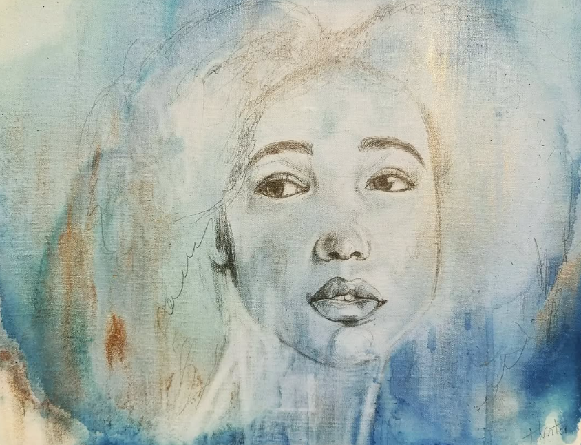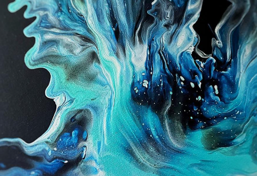 Blue has been my favourite colour to use since I started painting. You can find all of my acrylic paint pour videos on my YouTube channel which will show you my process. My love of blue paint also spills over into other areas of my art, including portraiture.